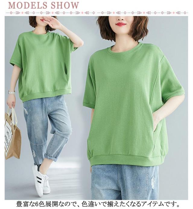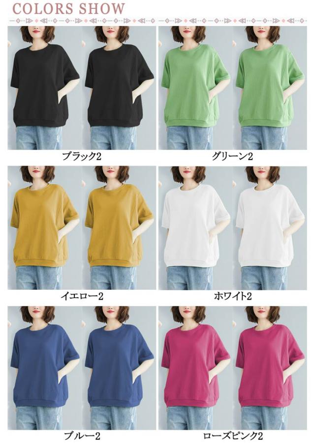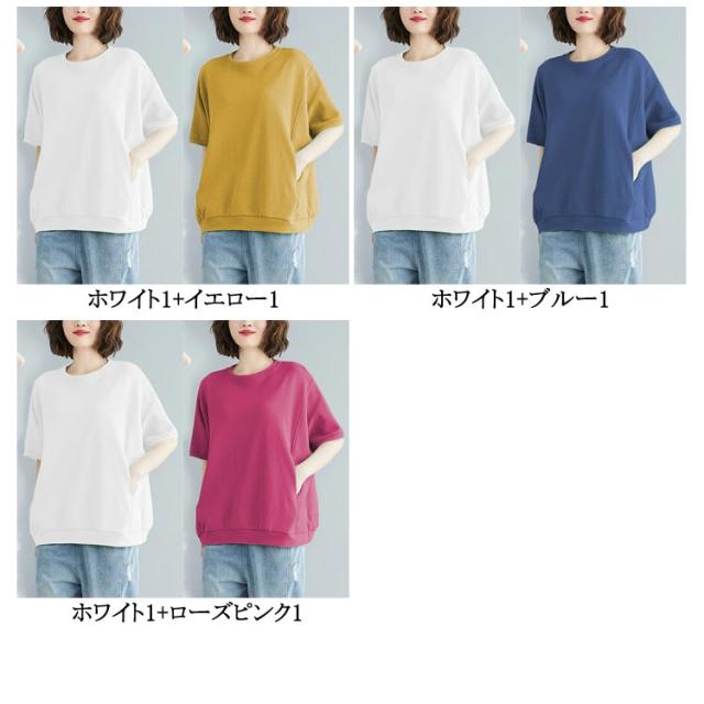 tシャツ レディース 2枚組 ゆったり レディース 半袖 カジュアル カットソー トップス 綿混 無地 ロング丈 おしゃれ Tシャツ tシャツ トレーナー 半袖 スウェットシャツ シンプル カットソー 無地 ゆったり シルエット