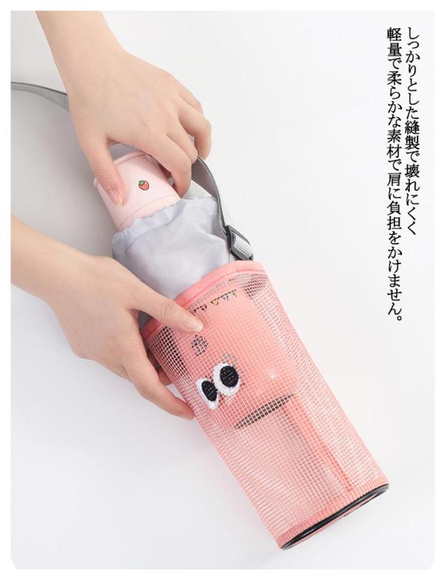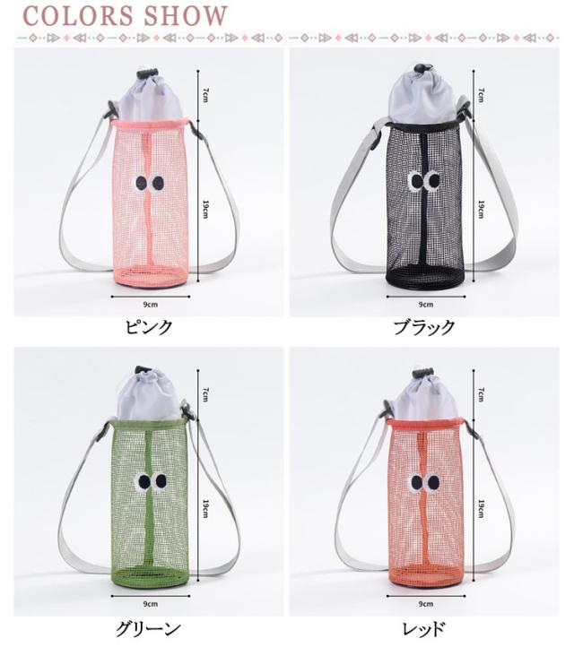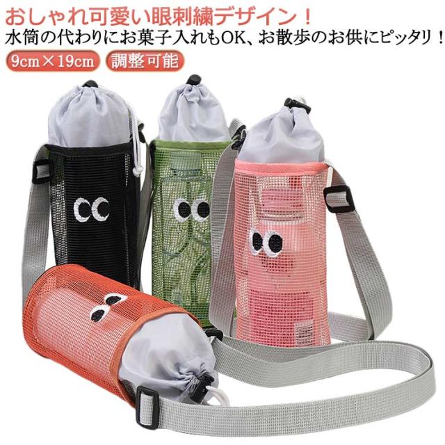 | おしゃれ可愛い眼刺繍デザイン!水筒の代わりにお菓子入れもOK、お散歩のお供にピッタリ! 水筒、ペットボトル、コップ様々な容器が収納できます。 ストラップの長さが調整可能、通勤通学、旅行やアウトドアなどのシーンにお使いいただけます。 メッシュで通気性がバツグン。 口ひも付きの巾着式で折り曲げても立ち上げ手紐をきゅっと絞って使えます。 底面マチが付いて、汚れても洗いやすく、目立ちにくいのが特徴です。 しっかりとした縫製で壊れにくく軽量で柔らかな素材で肩に負担をかけません。 | |