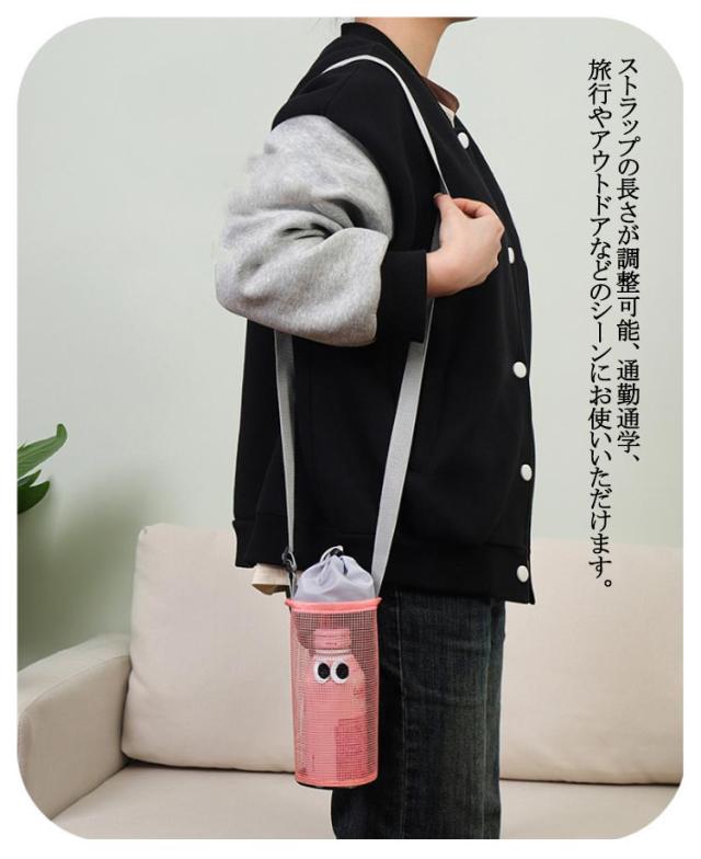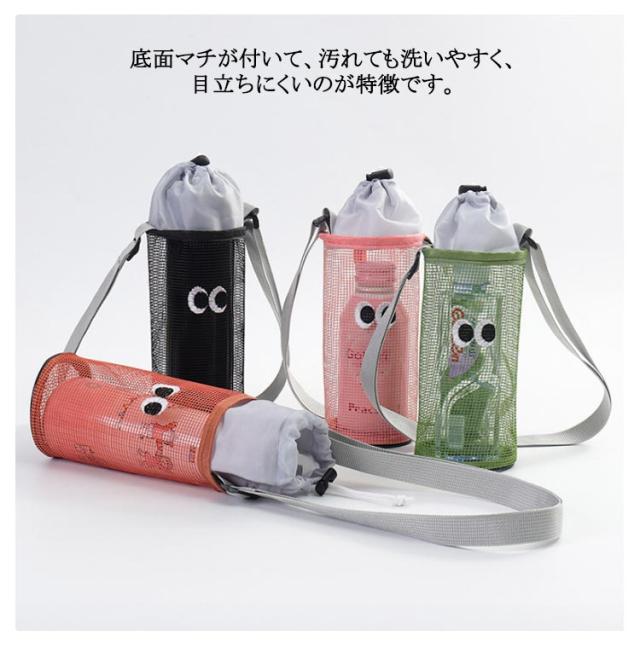 ペットボトルホルダー メッシュ 水筒ケース 水筒カバー ボトルスリング ボトルホルダー ショルダー 調整可能 巾着式 男女兼用 小物入れ 通勤 通学