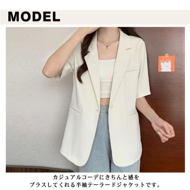 | カジュアルコーデにきちんと感をプラスしてくれる半袖テーラードジャケットです。 肌触りの優しい素材が気持よく着心地も抜群です。 半袖でスッキリとしたディティールなので、様々なスタイリングに合わせやすく、日差しや冷房対策にも活躍します。 シンプル無地なので合わせやすく、こなれ感たっぷりに仕上がる着丈もポイント! お出かけやデート、散歩、アウトドア、パーティー、飲み会、通学や普段着など様々な場面で活躍できます。 | |