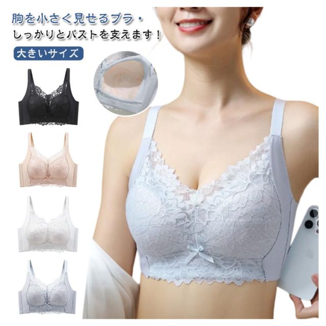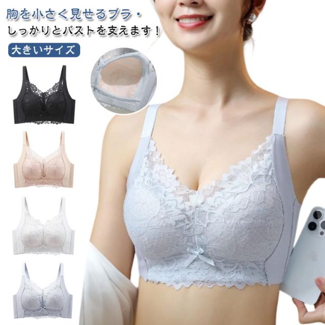 バストメイク ノンワイヤー ノンワイヤーブラ 着痩せブラ 大きな胸を小さく見せる 胸を小さく見せるブラ 通気 ブラジャー 背中 スッキリ 脇肉 薄手 胸を小さく見せるブラ 脇高 補正下着 美胸 垂れ胸 フルカップ レースブラ 下着 可愛い 安定感