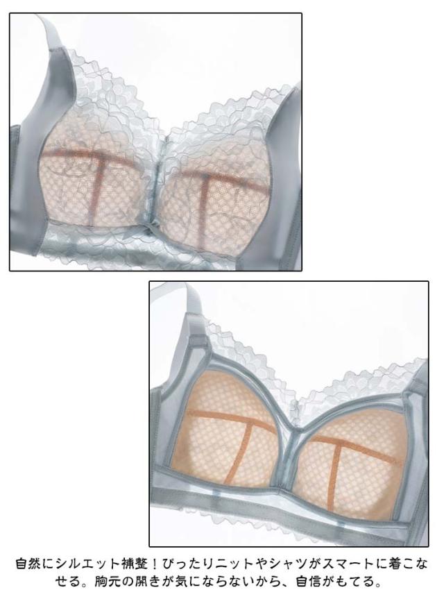 | 胸を小さく見せるブラ・しっかりとバストを支えます! ボリュームを抑える独自構造!バストを横に広げず、中心に寄せない設計でナチュラルにサイズダウン。高さが出にくいパッドで、上方向へのボリュームも軽減! レース素材で軽やか&ソフトな印象に! 自然にシルエット補整!ぴったりニットやシャツがスマートに着こなせる。胸元の開きが気にならないから、自信がもてる。 快適な着け心地にもこだわり!ノンワイヤーで締め付け感ゼロ。軽いレース素材がふわっと肌に馴染む。洗練されたデザインで、インナーにも気分が上がる♪ こんな方におすすめ!バストが大きくて、服を選びがち?胸が強調されるのが恥ずかしい?ワイヤー入りブラが苦手?自然にすっきり整えたい。 | |