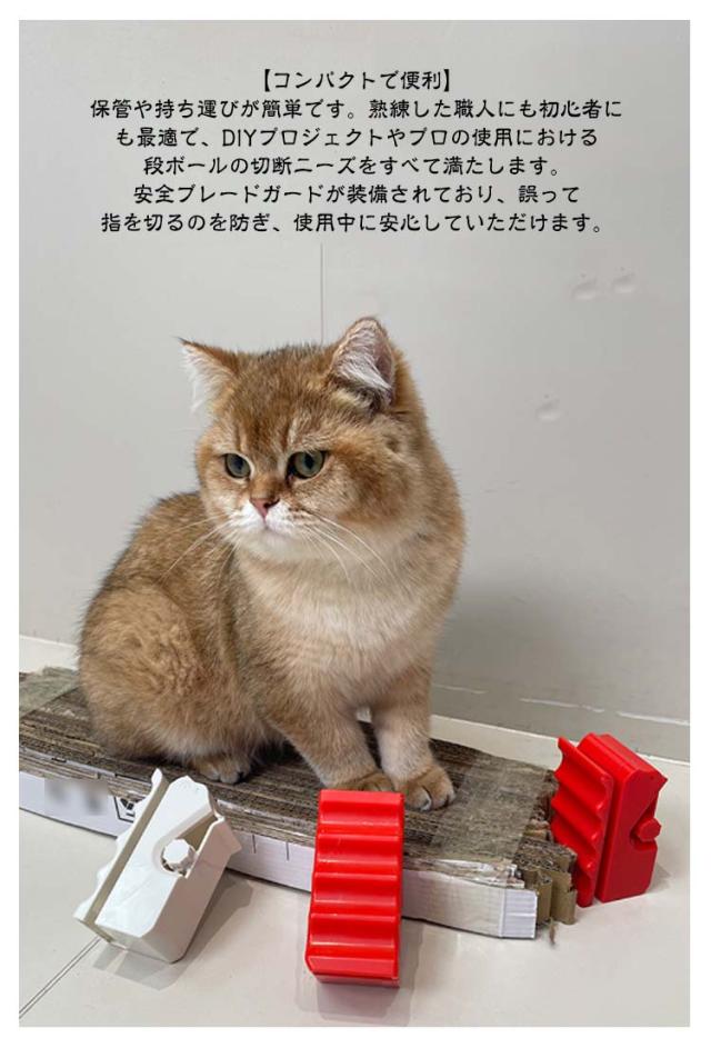 | DIY猫の爪研ぎ用段ボールカッター。 【猫の外観デザイン】家の装飾として、猫を愛する雰囲気を念頭に置いてデザインされた猫スクラッチャー用の創造的でかわいい段ボールカッターで、あなたの生活空間に暖かさと楽しさを加えてください。 【3Dプリント猫型カッター】3Dプリント技術を使用して作られています。愛らしい猫のシルエットが特徴で、DIYプロジェクトに楽しいタッチを加えます。猫好きの方に最適で、毛皮で覆われた友達もきっと気に入るでしょう。 【段ボールをDIY】カッターでゴミを遊びに変えましょう。このツールは、段ボールを楽しいおもちゃやスクラッチャーにリサイクルするのに最適です。ペットを楽しませながら、自分で段ボールのスクラッチャーを作ることで、段ボールのスクラッチャーにかかる費用を節約できます。 【コンパクトで便利】保管や持ち運びが簡単です。熟練した職人にも初心者にも最適で、DIYプロジェクトやプロの使用における段ボールの切断ニーズをすべて満たします。安全ブレードガードが装備されており、誤って指を切るのを防ぎ、使用中に安心していただけます。 【幅広い用途】段ボールを再利用して、ユニークな手作りの猫用爪とぎポスト、ガーデンマット、堆肥材料、クリエイティブな手作りの猫用ベッド、キャットツリー、その他のペット用家具を作ることができます。 | |