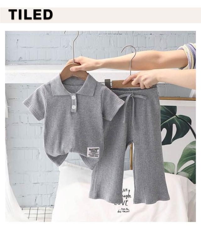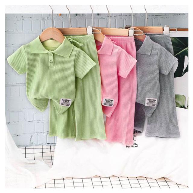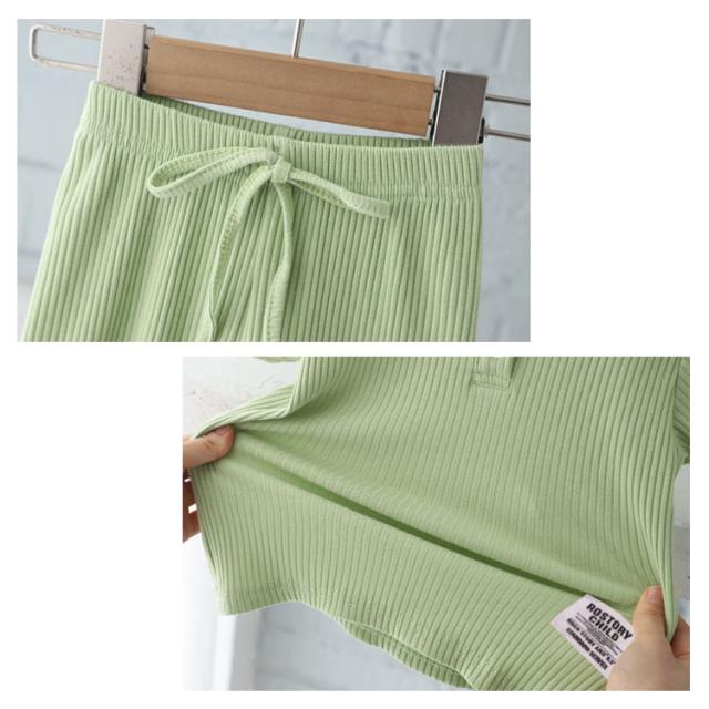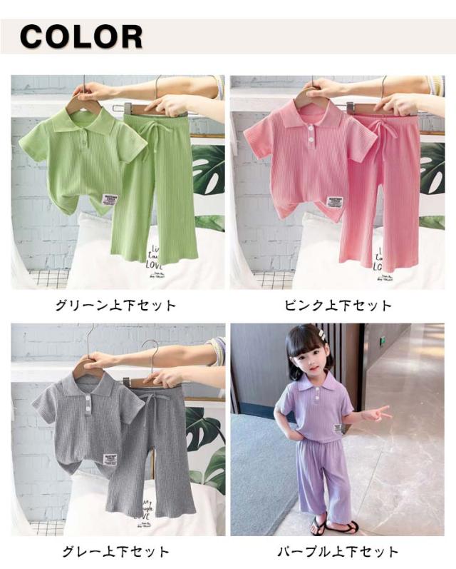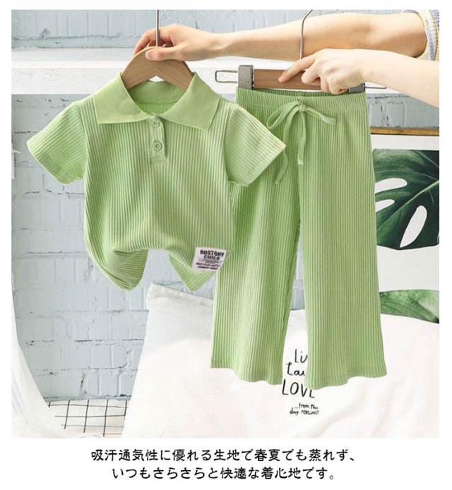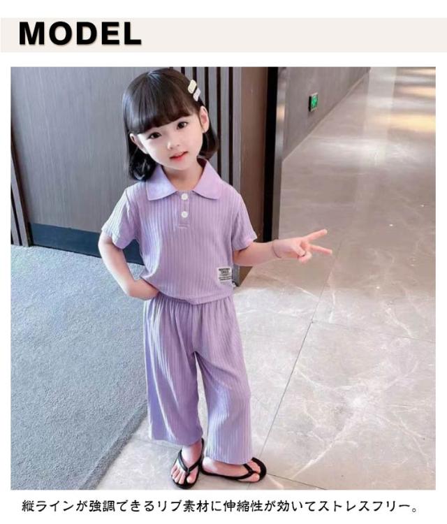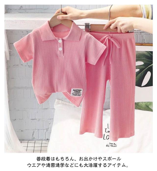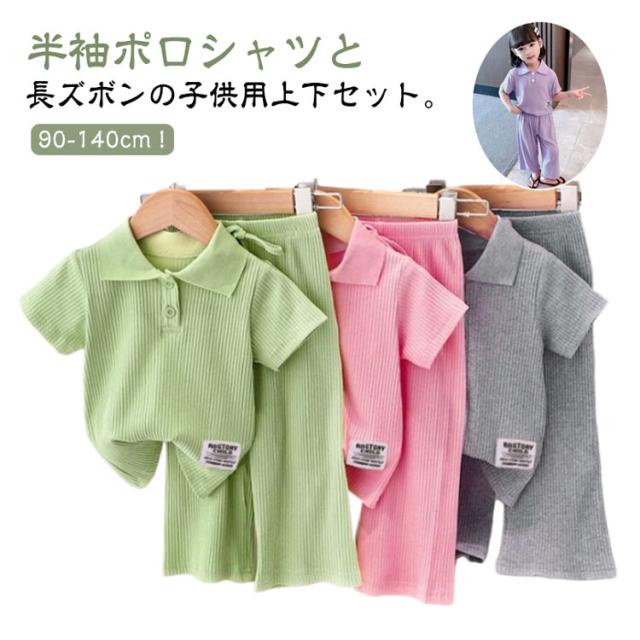 子供服 スポーツウェア 夏 女の子 リブ 半袖 通学 長ズボン 通園 ポロシャツ 子ども服 ベビー服 夏服 キッズ 涼しい 110 キッズ 2点セット 可愛い 幼稚園 保育園 運動着 ルームウェア 部屋着 90 100 伸縮性 120 130 140