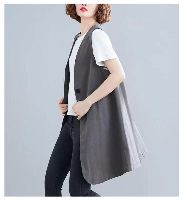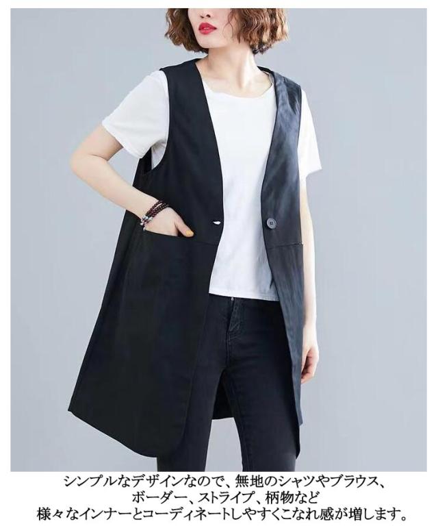 レディース レディース 春夏 リネン 春秋 夏 ポケットある ジレ ジレベスト ベスト ロング 麻 ベスト 薄手 前開き 夏 リネンベスト ロングジレ リネン ノースリーブ 綿麻 トレンチベスト 無地 ジレンチ トップス