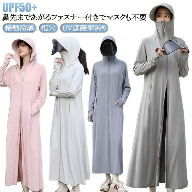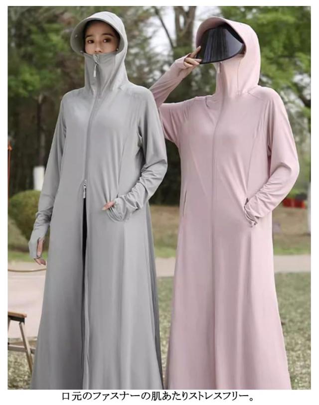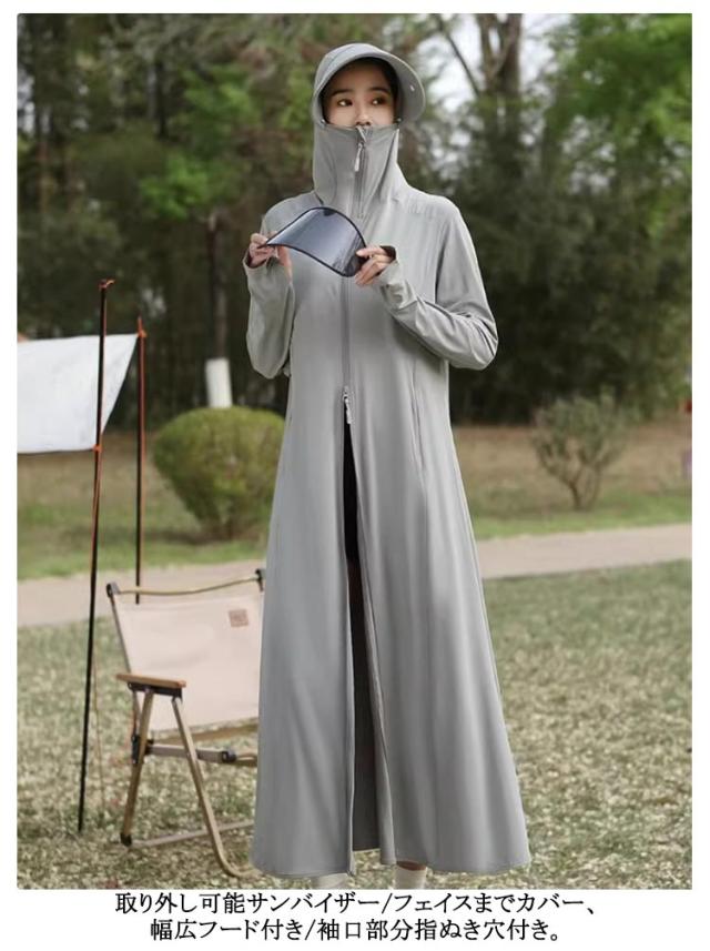 UVカット長袖 uvパーカー uvパーカー ラッシュガード レディース UV ロング丈 -5℃ レディース UVカット サンバイザー外し可能 ロング 長袖 つば ラッシュガード 指穴 接触冷感 取り外し あご紐 サンバイザー 6in1 大きいサイズ