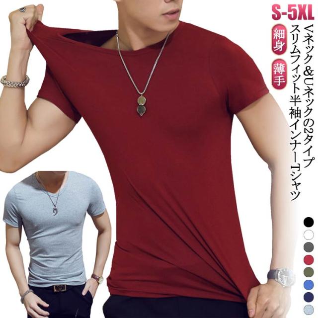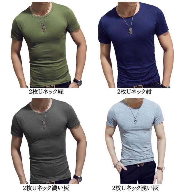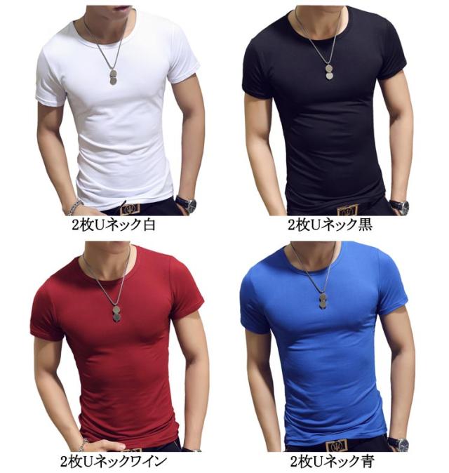 半袖tシャツ アンダーシャツ 丸首 Vネック メンズ Uネック 半袖 インナーシャツ スリム 細身 肌着 2枚セット ヒートインナー 2枚セット ストレッチ インナーtシャツ ヒートテック 無地 薄手 スポーツウェア ルームウェア 送料無料