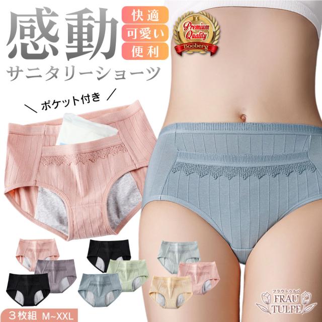 【 3枚 セット 】 サニタリーショーツ 綿 ポケット 大きいサイズ 下着 レディース ジュニア 小学生 昼用 生理 パンツ かわいい 生理用下着 サニタリー ショーツ 夜用ショーツ 生理ショーツ サニタリーパンツ おしゃれ コットン 漏れない 防水布 国内検査済