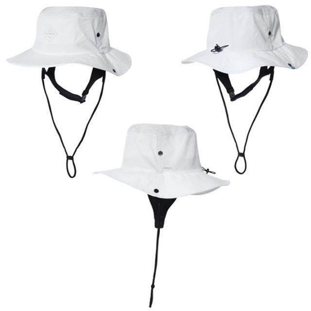 ●フロント部のツバ芯や取外し可能な顎紐など、サーフハット機能を残し、海でも陸でも着用できるハイブリッド仕様。