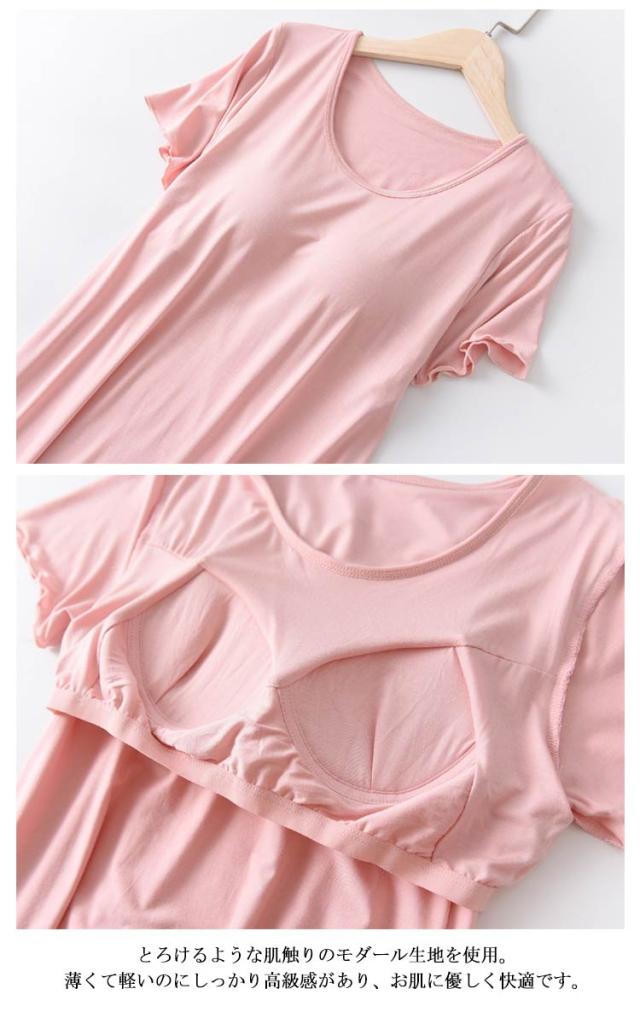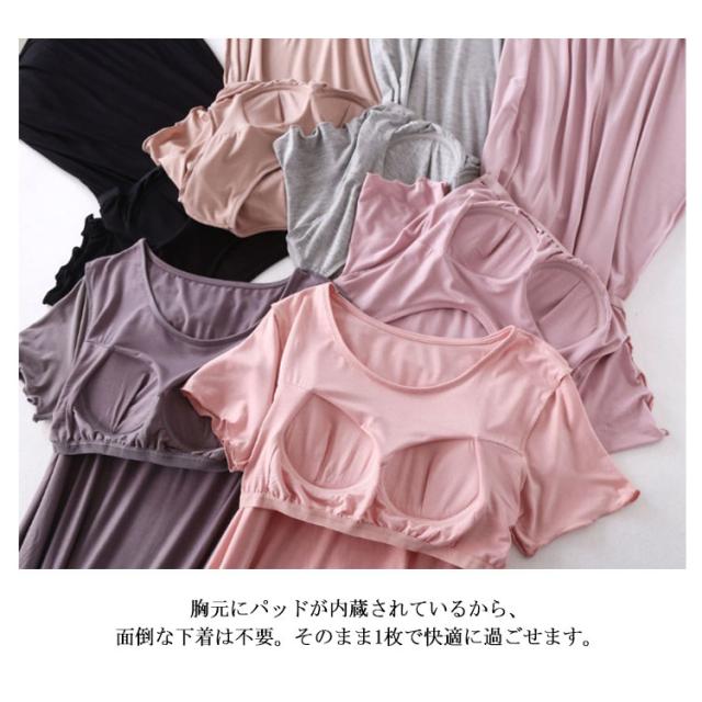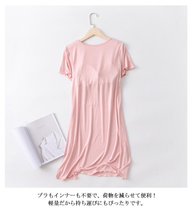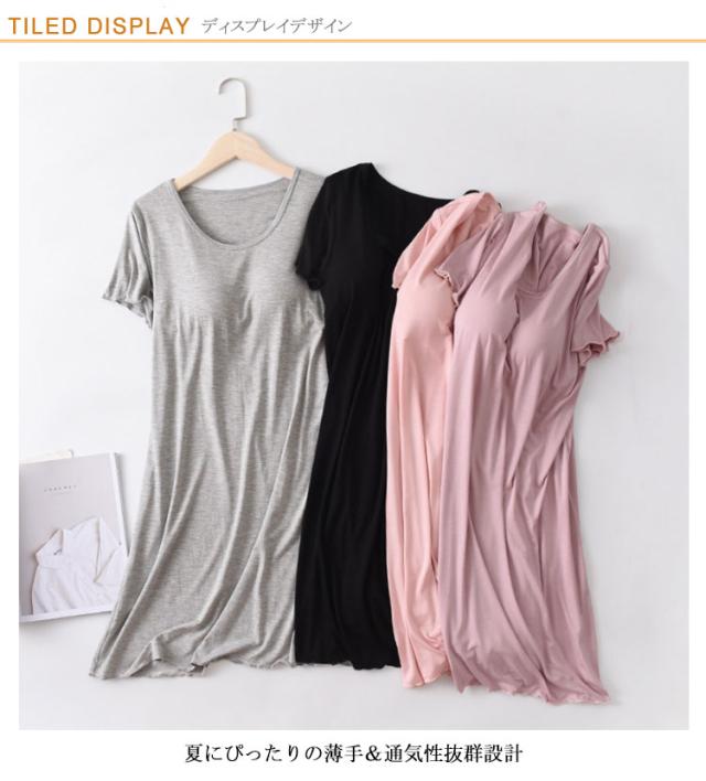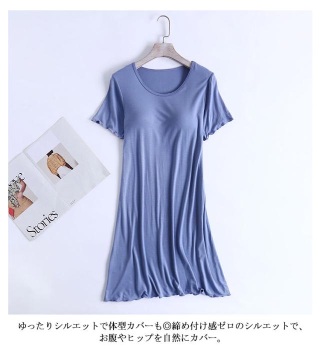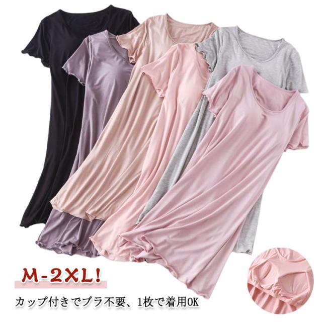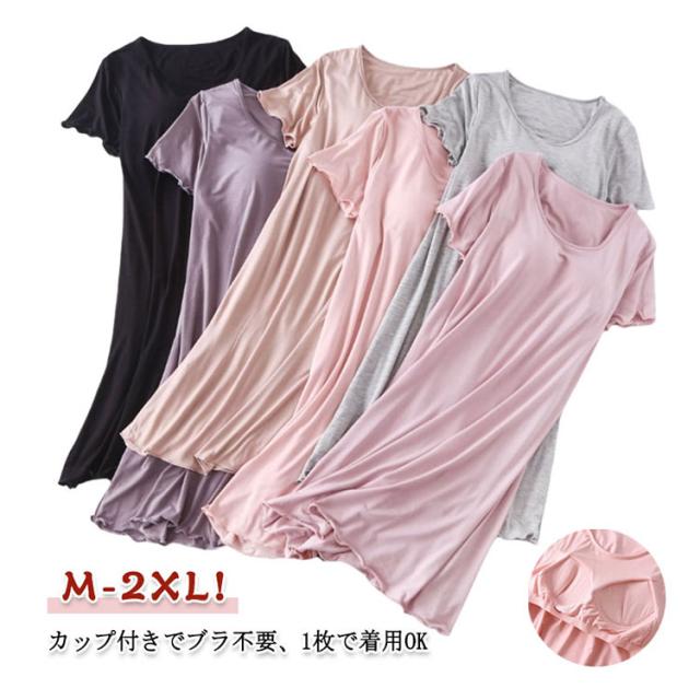カップ付きパジャマ 夏用 レディースパジャマ ワンピース カップ付き ワンピース 胸パッド付き ナイトウェア 部屋着 体型カバー 半袖ワンピース 薄手 ルームウェア 通気性抜群 ゆったり 大きいサイズ ルームウェア ノーブラOK