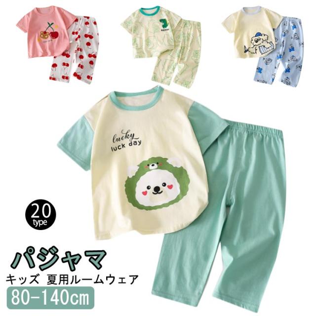 | キッズ パジャマ 夏用ルームウェア 80-140cm コットン素材なのでやさしく柔らか、汗をかいても大丈夫 サラリと薄手で軽い着心地、優れた通気性で寝苦しさも解消 パンツはウエスト総ゴムで着脱がラク | |