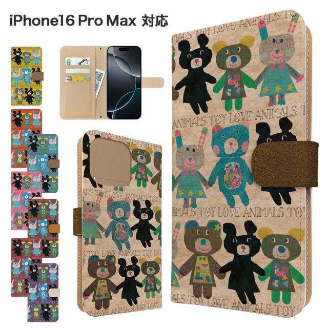 iPhone16 Pro Max ケース 手帳型 スマホケース カバー アニマル くま スマホカバー 携帯カバー アイフォン16プロマックス ケース うさぎ 動物