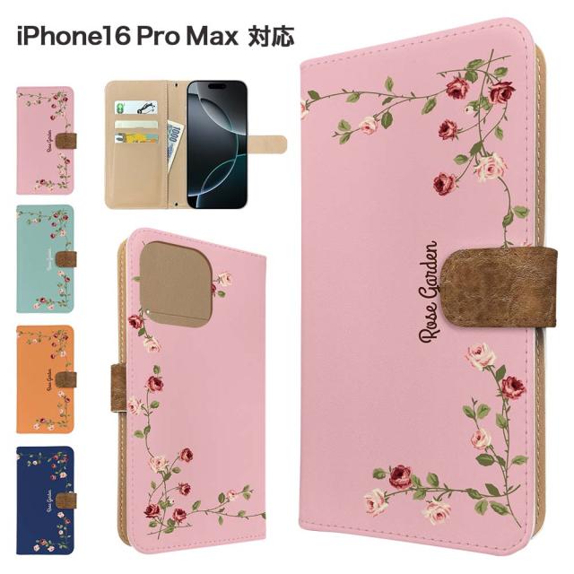 iPhone16 Pro Max ケース 手帳型 スマホケース カバー 花柄 フラワー スマホカバー 携帯カバー アイフォン16プロマックス ケース バラ ローズ