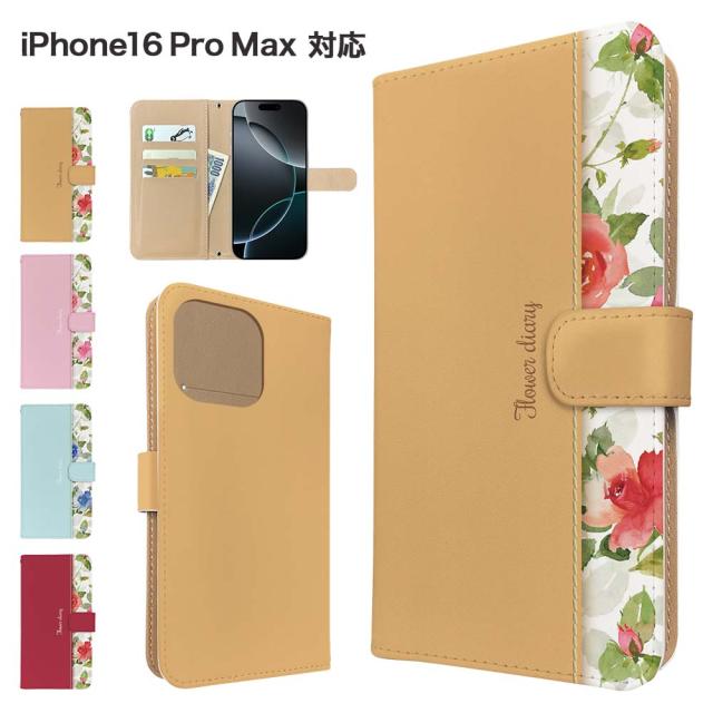 iPhone16 Pro Max ケース 手帳型 スマホケース カバー 花柄 フラワー スマホカバー 携帯カバー アイフォン16プロマックス ケース