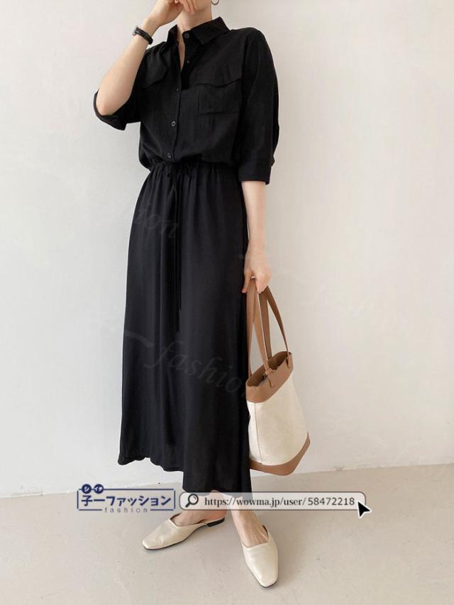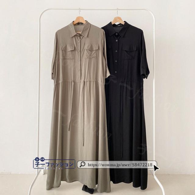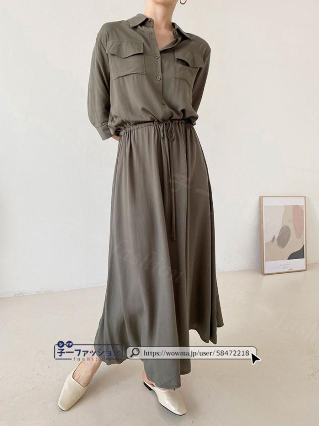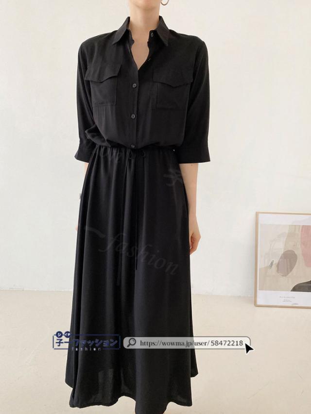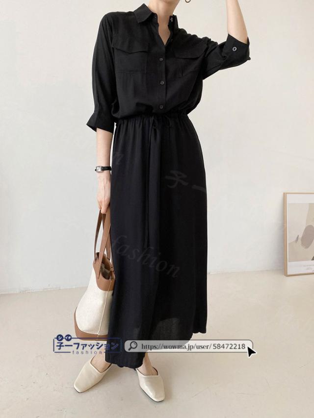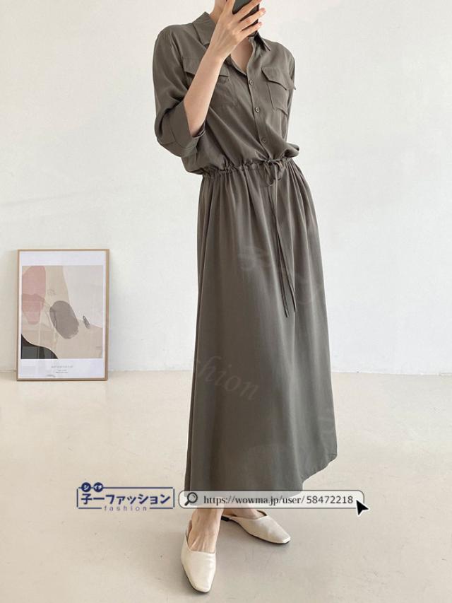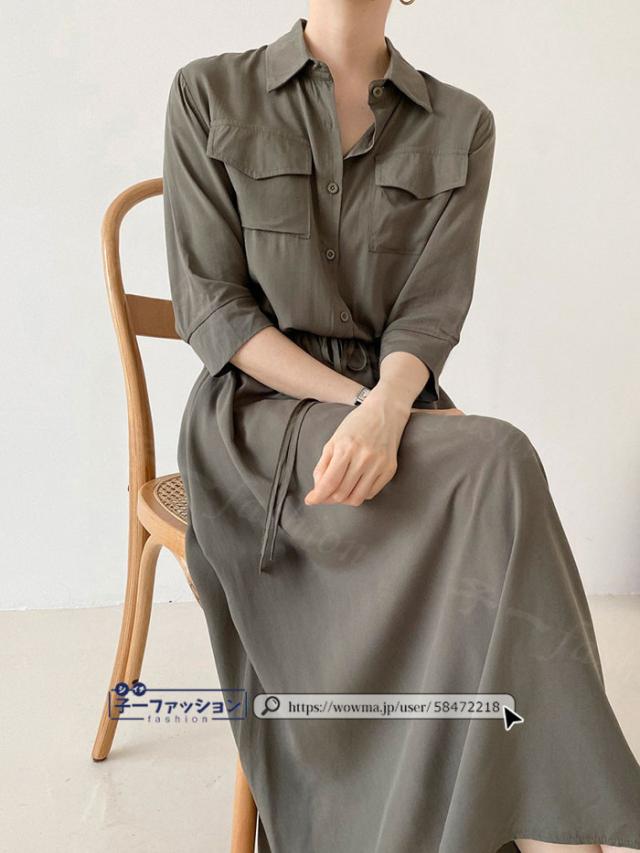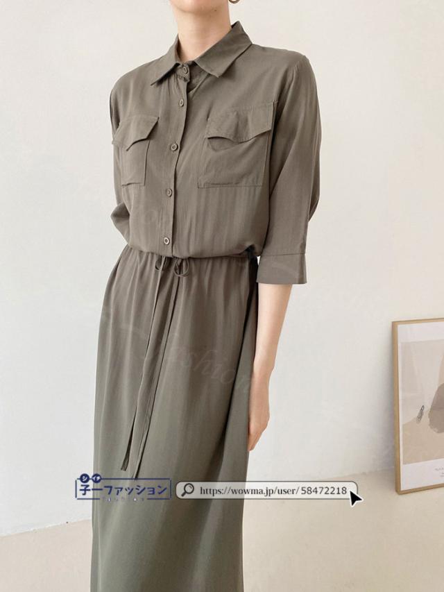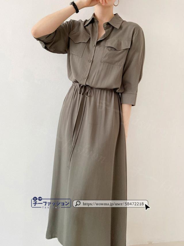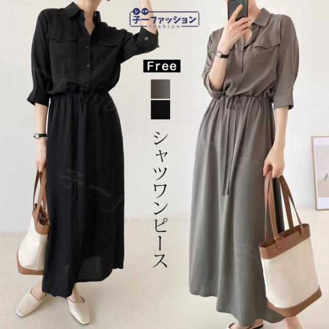 シャツワンピース ロング ワンピース 春新作 新作 レディース 五分袖 ロングワンピース シャツワンピ aライン フレアワンピース 大人 フォーマル 体型カバー オフィスカジュアル きれいめ 春 夏 秋冬 バレンタイン