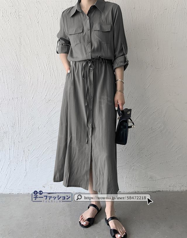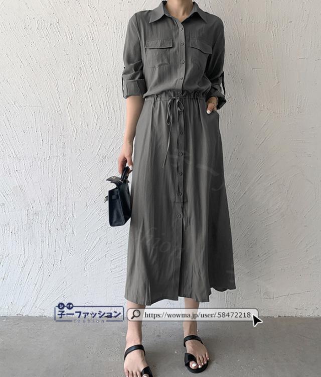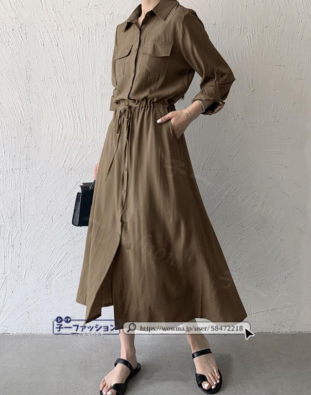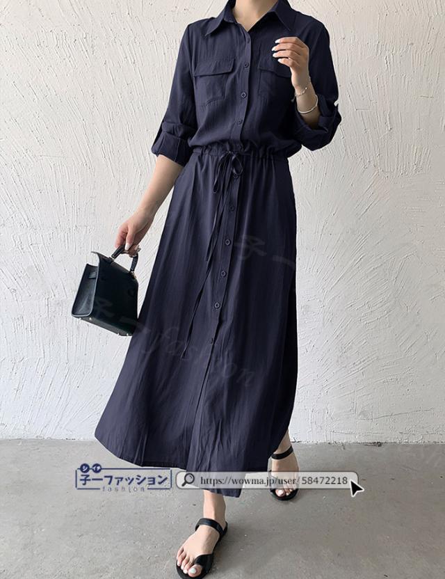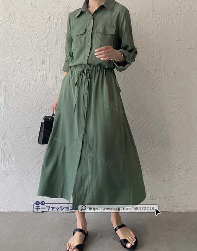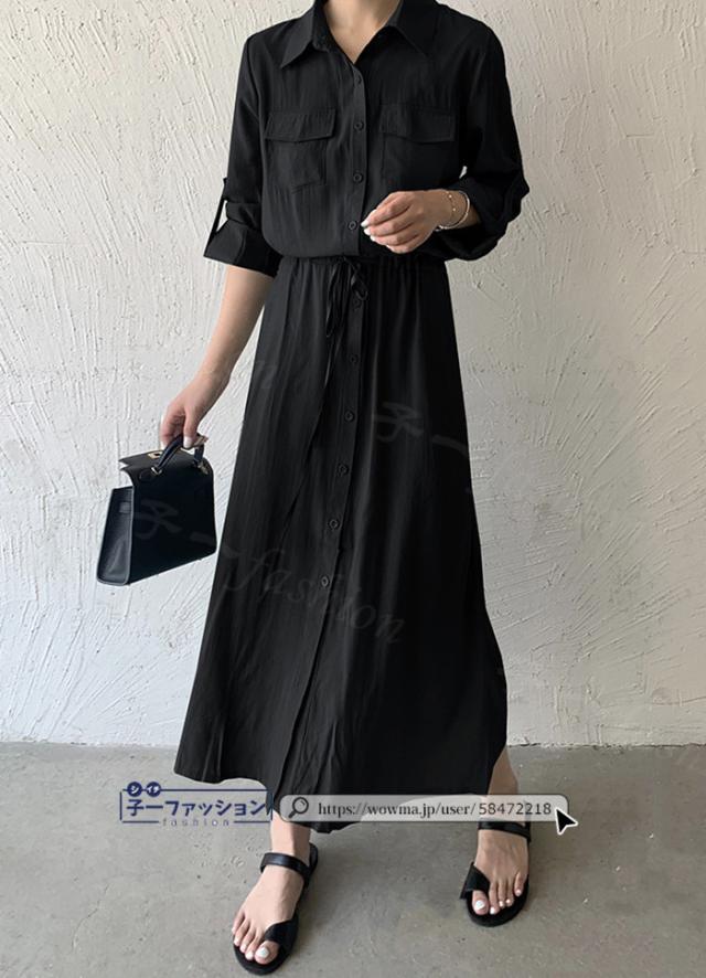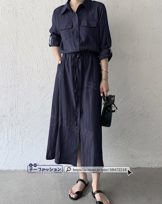 シャツワンピース ロング ワンピース 春新作 新作 レディース 長袖 ロングワンピース シャツワンピ aライン フレアワンピース 大人 フォーマル 体型カバー オフィスカジュアル きれいめ 春 夏 秋冬 バレンタイン