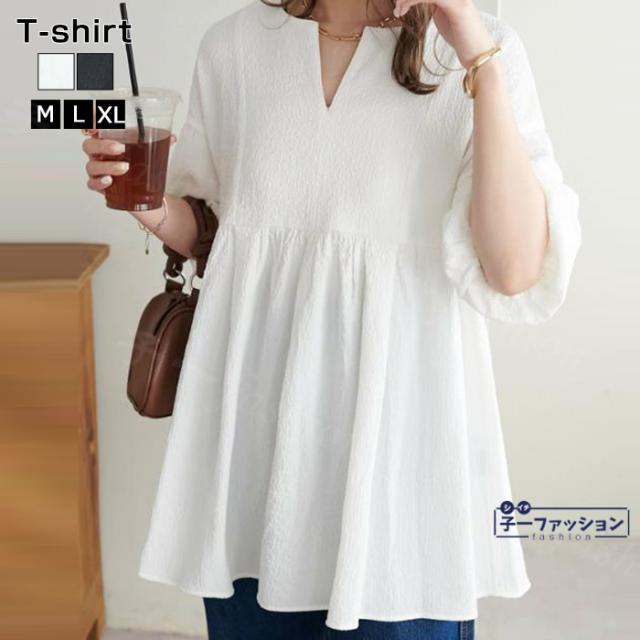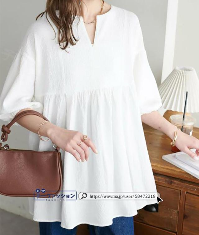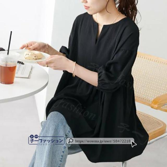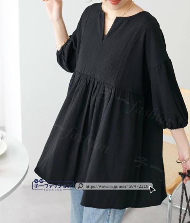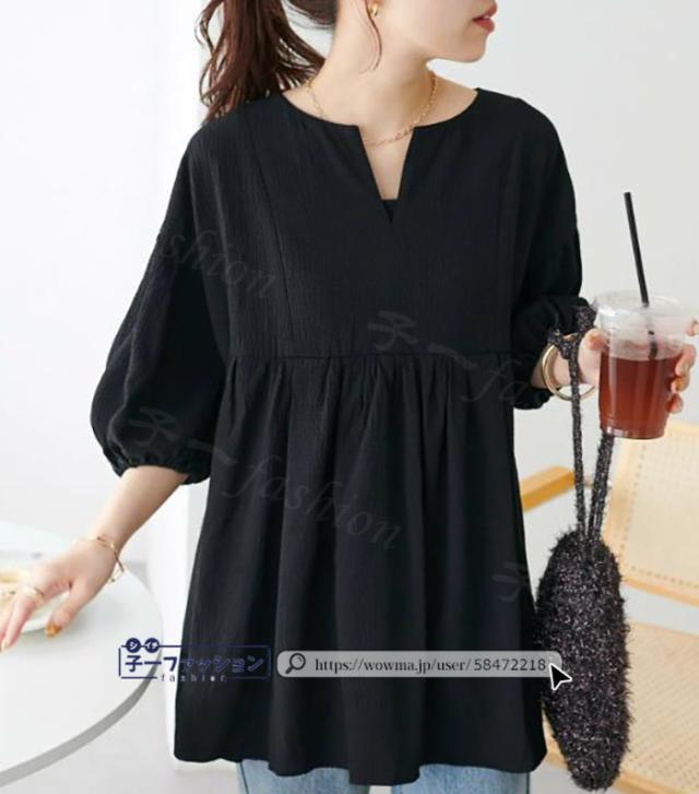 ブラウス レディース トップス ティアード 裾切替え フリル バルーンスリーブ Aライン 五分袖 春新作 新作 Vネック オフィス 二の腕カバー 春夏秋 体型カバー ぽわん袖 夏 春 夏服 大人可愛い 秋冬 バレンタイン
