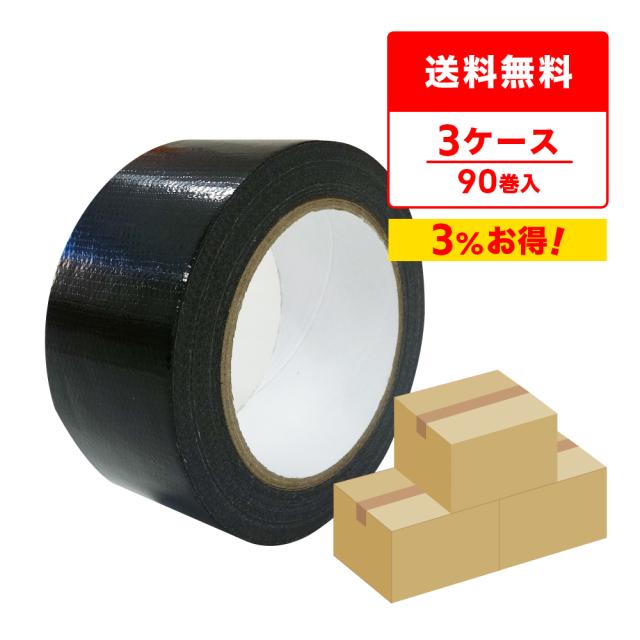 布テープ 粘着テープ ガムテープ 黒 50mmx25m 0.20mm厚 30巻x3箱 個包装 PNT-2050BK-3 ブラック 梱包用布テープ 梱包テープ 梱包用品 梱包資材 送料無料 サンキョウプラテック