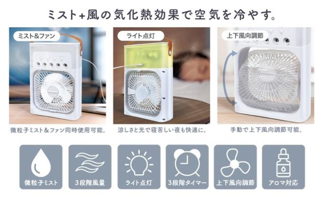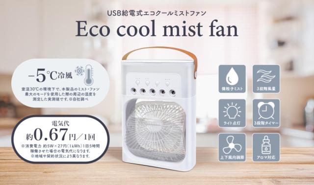 USB給電式 エコクール ミストファン [HAC4875] 約W16×D7×H23cm 卓上 扇風機 冷風扇 ミストファン 冷んやり 涼しい 夏