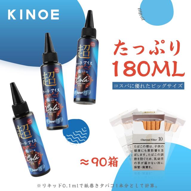 電子タバコ リキッド コーラアイス 180ml 特大容量 国産ハッカ使用 VAPE りきっど 爽快感 ニードルボトル付き ニコチン・タールゼロ KINOE