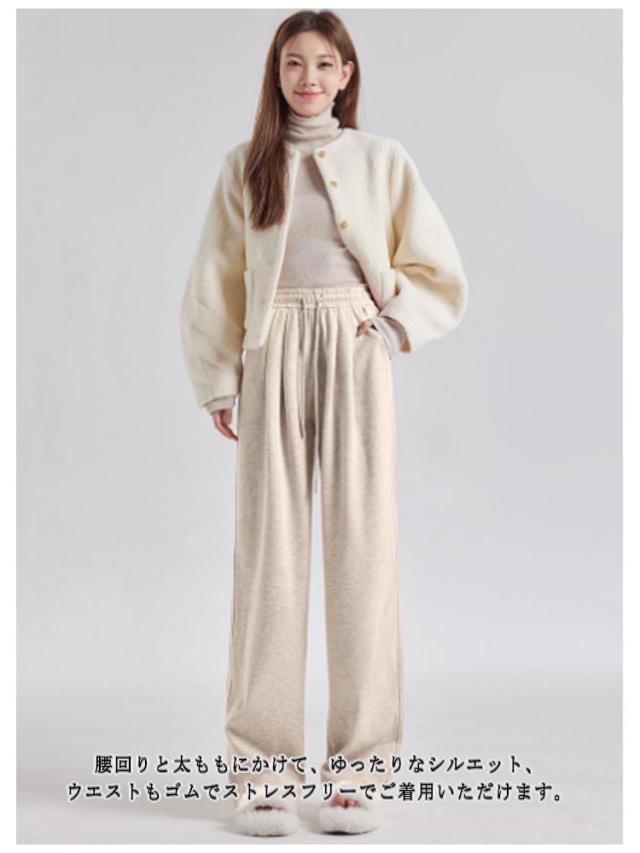 | 素材感が可愛い冬らしいワイドパンツ。 キレイめなデザインできちんと感のあるコーディネートにも使えます。 柔軟な生地、ゆったりとしたロング丈のデザインで、快適な着心地を提供します。 腰回りと太ももにかけて、ゆったりなシルエット、ウエストもゴムでストレスフリーでご着用いただけます。 着痩せや美脚、さらに脚長効果も期待できるワイドパンツです。 大人女性にぴったりのアイテムです。 | |