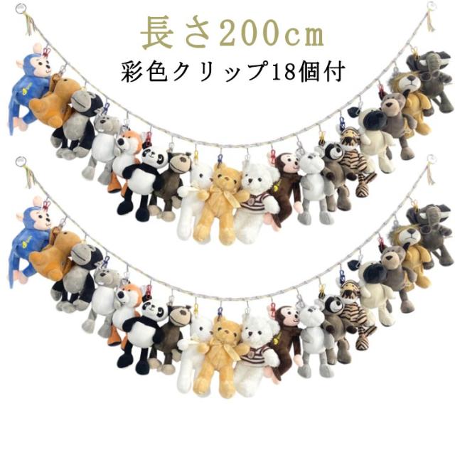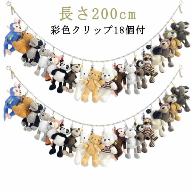 ぬいぐるみ収納 吊り下げ 収納 ぬいぐるみ 吊り下げ おもちゃ ぬいぐるみ 吊り下げ式 収納用 ロープ クリップ付き ぬいぐるみ収納 おしゃれ スッキリ 収納 ディスプレイ お片付け 省スペース