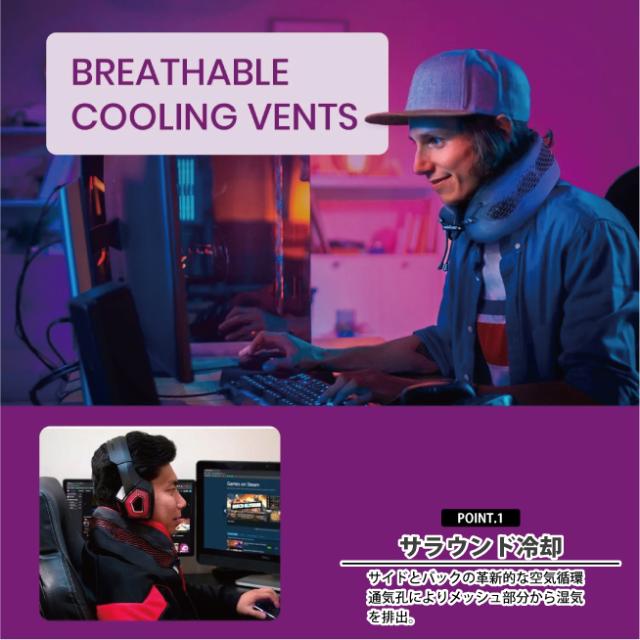 メッシュ構造による優れた通気性と、汗に強い吸湿発散性の生地で長時間使用でも快適。首の太さに合わせて調節でき、飛行機や新幹線など長距離移動でも安定したサポートを実現します。