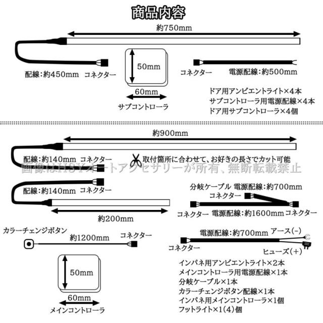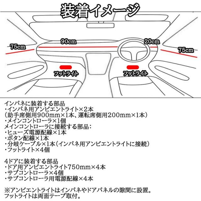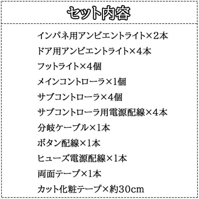 ※アンビエントライトは設置位置、電源、スイッチボタン配置などをお取付けの際は現車を採寸して行ってください。