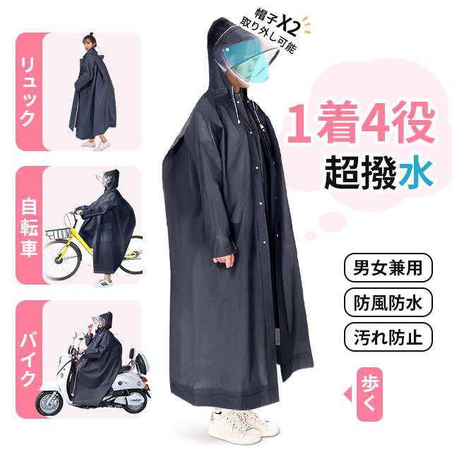 おしゃれ レインコート 自転車 レインポンチョ レディース メンズ リュック レインウェア レインスーツ 大きな二重つば付き 防水 軽い 雨具 雨合羽 通勤 通学