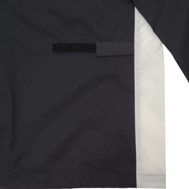 ボトムスは、インナーパンツのフロントポケットに直接アクセスできるスルーポケットが付き、裾には裾幅を調整できるテープが施されています。