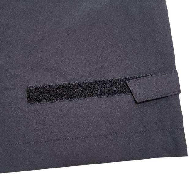 ボトムスは、インナーパンツのフロントポケットに直接アクセスできるスルーポケットが付き、裾には裾幅を調整できるテープが施されています。