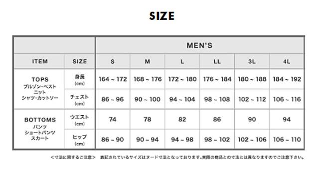 | 商品サイズ(計測実寸値) | 【SSサイズ】ジャケット 着丈 66cm / ゆき丈 83cm / 身幅 55cm パンツ ウエスト 67cm / ヒップ 92cm / 股上 30.5cm / 股下 81cm / わたり幅 34.5cm 【Sサイズ】ジャケット 着丈 67cm / ゆき丈 85cm / 身幅 56.5cm パンツ ウエスト 69cm / ヒップ 96cm / 股上 30.5cm / 股下 81cm / わたり幅 35cm 【Mサイズ】ジャケット 着丈 69cm / ゆき丈 87cm / 身幅 58.5cm パンツ ウエスト 74cm / ヒップ 99cm / 股上 31.5cm / 股下 81cm / わたり幅 36cm 【Lサイズ】ジャケット 着丈 70cm / ゆき丈 90cm / 身幅 60cm パンツ ウエスト 78cm / ヒップ 103cm / 股上 31.5cm / 股下 81cm / わたり幅 37cm 【LLサイズ】ジャケット 着丈 72.5cm / ゆき丈 92cm / 身幅 63cm パンツ ウエスト 80cm / ヒップ 107cm / 股上 31.5cm / 股下 81cm / わたり幅 37.5cm ※商品生地の特性によって、1-2cm前後の誤差が生じます。 ※商品タグに記載されているサイズはヌード寸法になります。 |