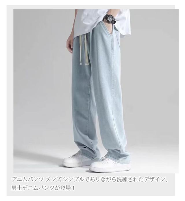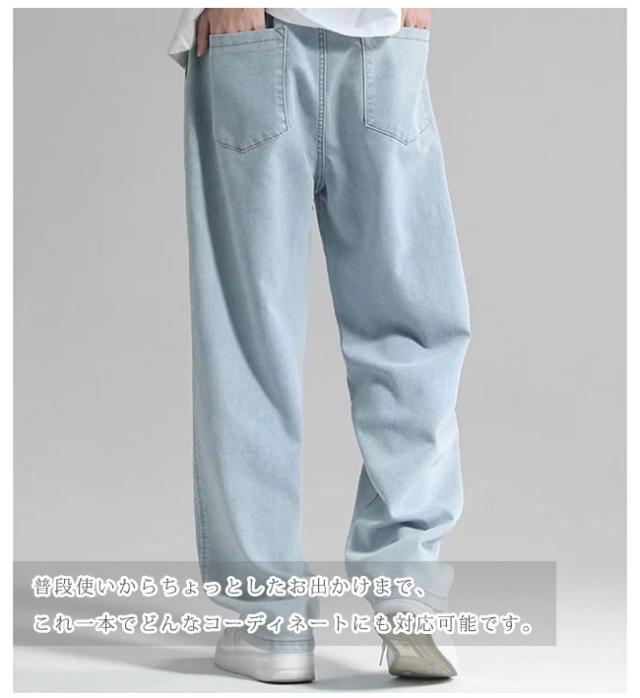 秋新作 デニムパンツ メンズ ワイドパンツ ジーンズ ゆったり ストレート バギーパンツ 春 夏 秋 冬アンクルパンツ 大きいサイズ イージーパンツ ウエストゴム 調整紐 父の日