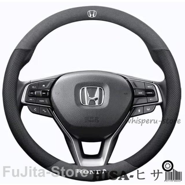 ホンダ N-BOX CR-V アスコート インサイト アヴァンシア シビックタイプR アコード インテグラ エアウェイブ クロス シティ ジャズ H-RV CR-X ライフ ステアリングカバー ハンドルカバー スエード メッシュデザイン 本革 新品 インテリア br>内装パーツ