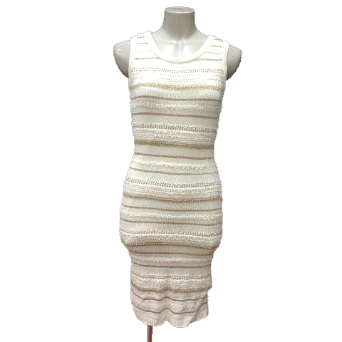 【中古】レディ Rady ワンピース ニット ひざ丈 ボーダー ノースリーブ ラメ F 白 アイボリー /MN レディース