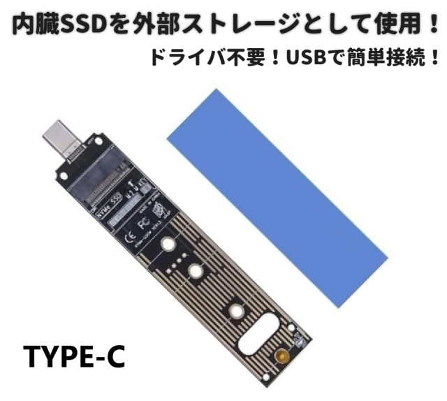 SSDを外付けドライブとして使用! M.2 PCIe NVME SSD → USB3.1 TYPE-C 変換 アダプタ コネクタ ボード ドライバ不要 データ 高速転送 アダプター ハードディスク コンバータ