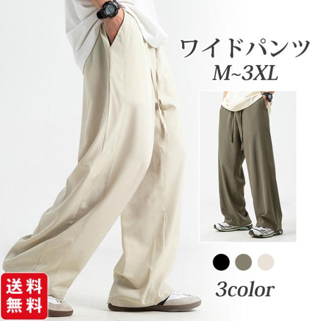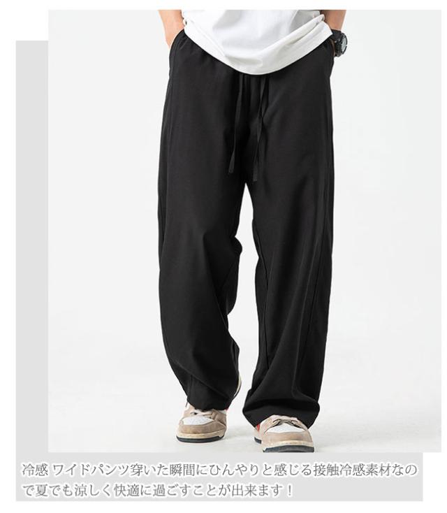 ワイドパンツ メンズ 涼しい ズボン 夏服 ロング丈 ボトムス ストレート イージーぱんつ 夏用 ゆったり 無地 スラックス 軽快 大きいサイズ カジュアル 春 夏