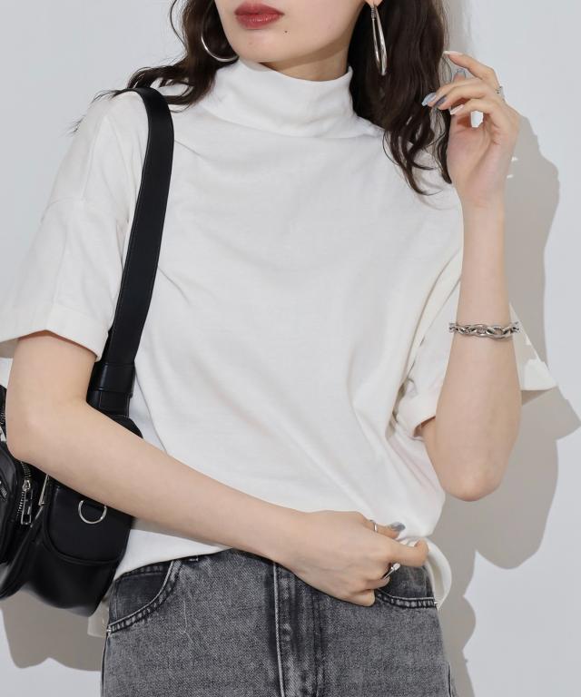 程よい高さのハイネックデザインが首元をすっきりと見せ、1枚での着用はもちろん、レイヤードスタイルにも活躍。