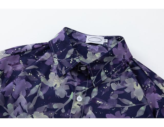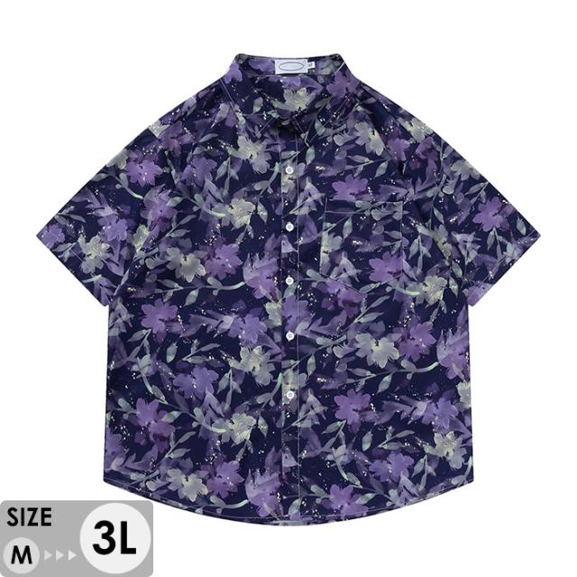 アロハシャツ シャツ レディース メンズ 開襟シャツ 葉柄 夏物 ハワイアン 半袖 大きいサイズ シンプルデザイン 開襟 オープンカラー カジュアル ストリートリゾート パープル mo001jcjcm5