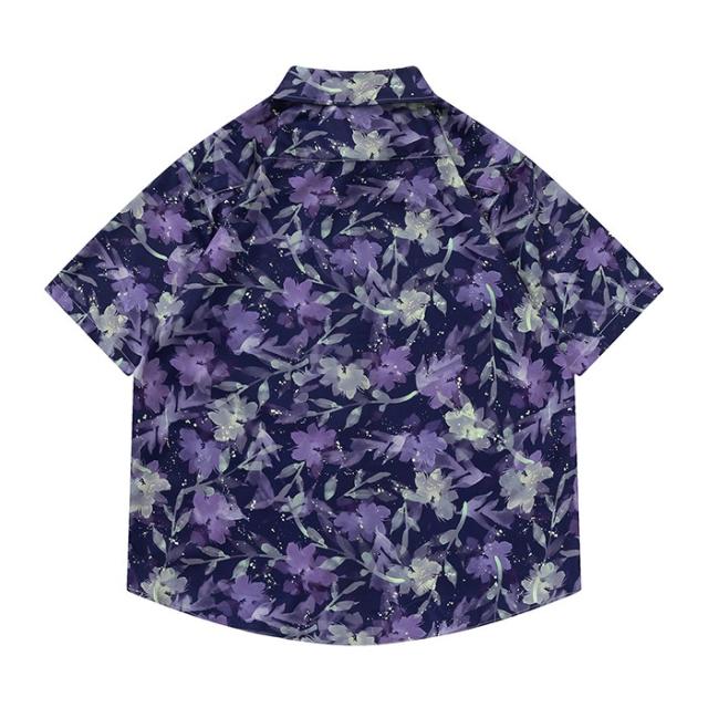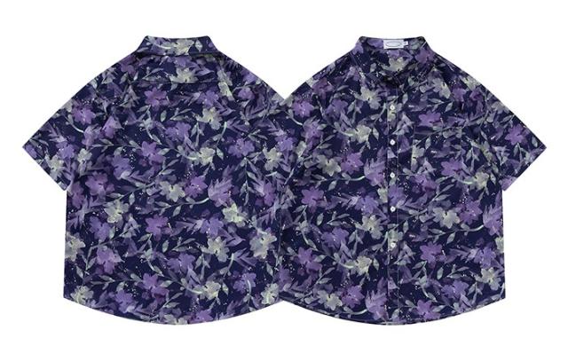 アロハシャツ シャツ レディース メンズ 開襟シャツ 葉柄 夏物 ハワイアン 半袖 大きいサイズ シンプルデザイン 開襟 オープンカラー カジュアル ストリートリゾート パープル