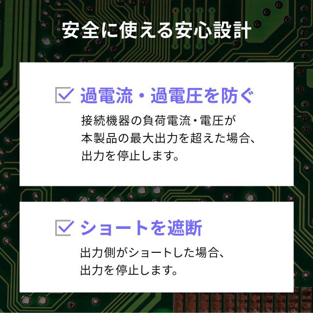 ●過電流・過電圧・短絡保護などの多重保護機能を搭載し、安心して使用できます。