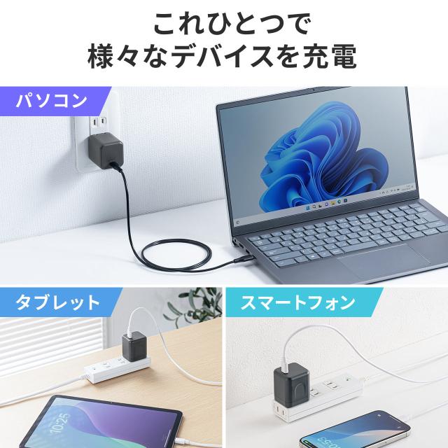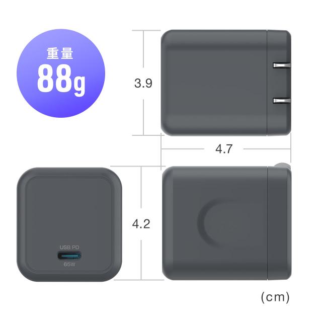 USB充電器 PD 充電器 最大65W 1ポート Type-C×1 GaN採用 折りたたみ式プラグ 超小型 キューブ 急速充電 ノートパソコン スマホ タブレット PSE適合商品[700-AC044]