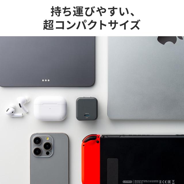 ●次世代半導体GaN(窒化ガリウム)を採用し、高効率かつコンパクトな設計を実現したUSB Type C×1ポート仕様のUSB充電器です。●最大65WのUSB Power Delivery(PD)規格の出力に対応し、ノートパソコンやタブレット、スマートフォンなど幅広いデバイスに対応します。