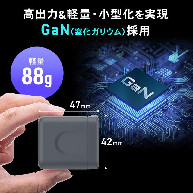 ⇒ご購入の前にご確認下さいUSB Power Delivery規格による最大65W出力に対応。USB PD対応のノートパソコン、タブレット、スマートフォンを充電可能なUSB Type-Cポートを1つ搭載したUSB充電器。次世代半導体GaN(窒化ガリウム)によって高出力ながらも小型化を実現。【WEB限定商品】
