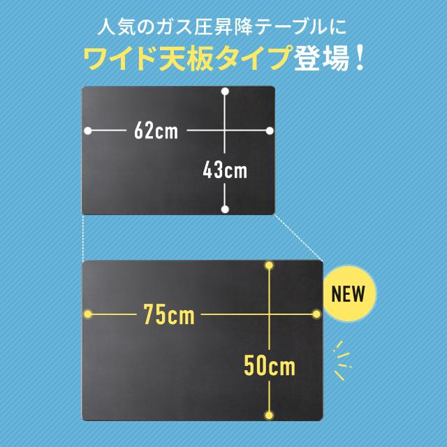 ●少し広めな天板サイズのガス圧昇降デスクです。●従来のものより天板サイズが横幅13cm、奥行7cmアップして幅75m奥行50cmになり,ゆったり使用することができます。