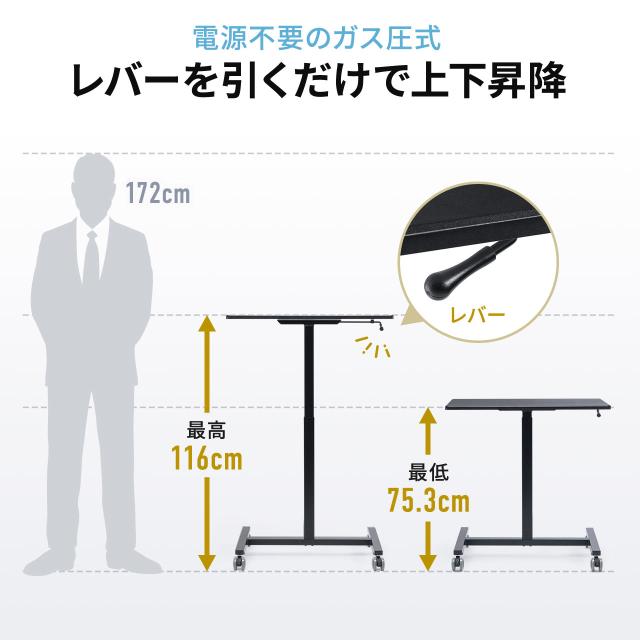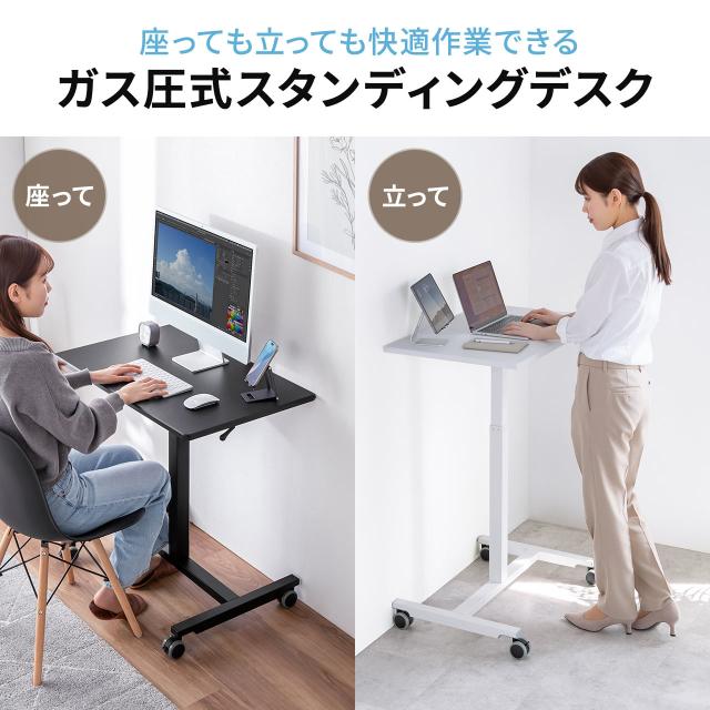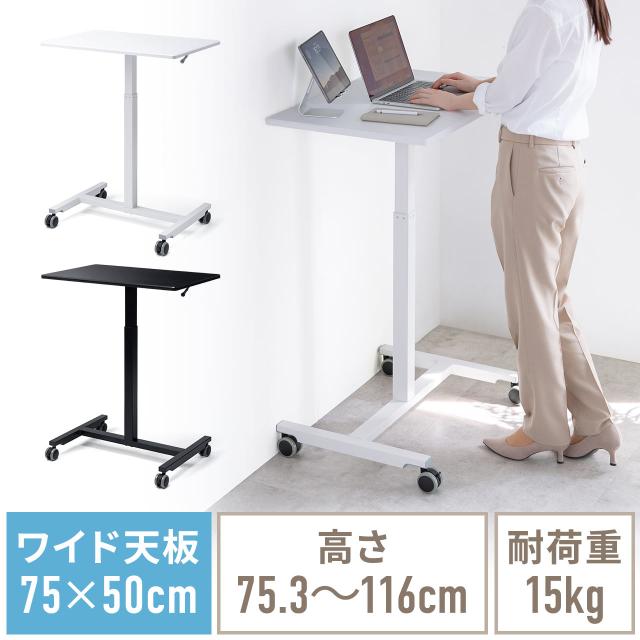スタンディングデスク 上下昇降デスク ガス圧昇降 電源不要 昇降幅40cm 幅75cm 奥行50cm 腰痛軽減 ブラック ホワイト[100-ERD047]