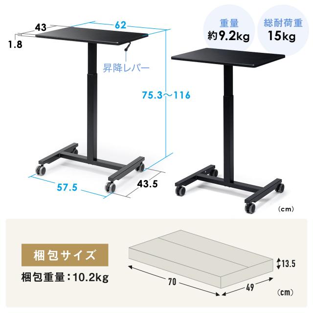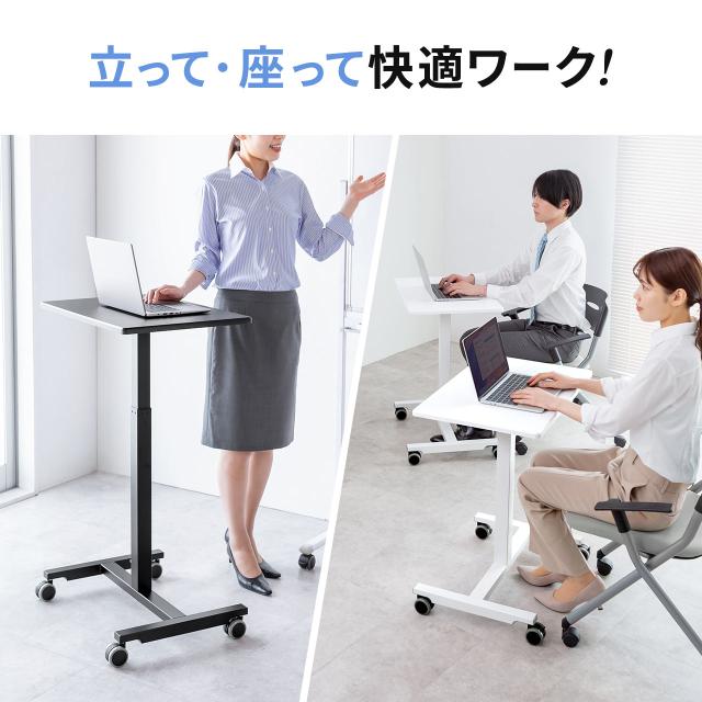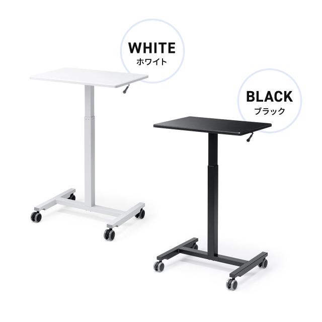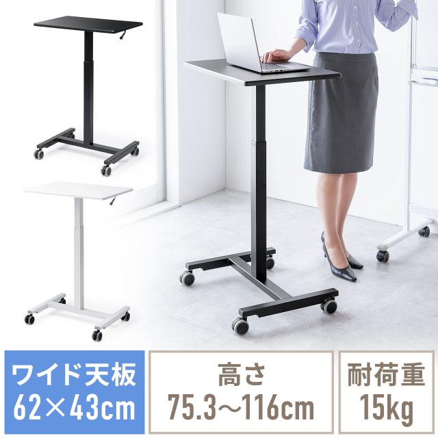 スタンディングデスク コンパクト ガス圧昇降 幅62cm 奥行43cm 高さ76〜110cm キャスター付き 腰痛軽減 座りすぎ防止 ブラック ホワイト[100-ERD048]