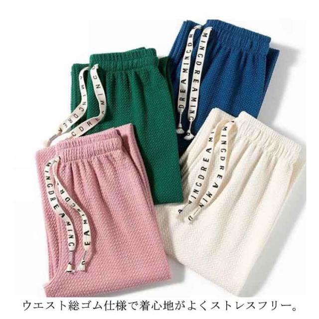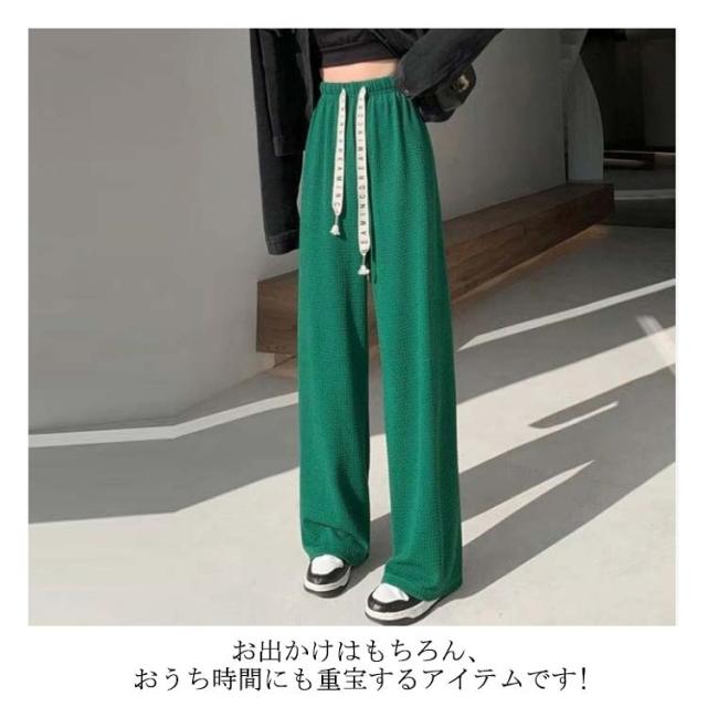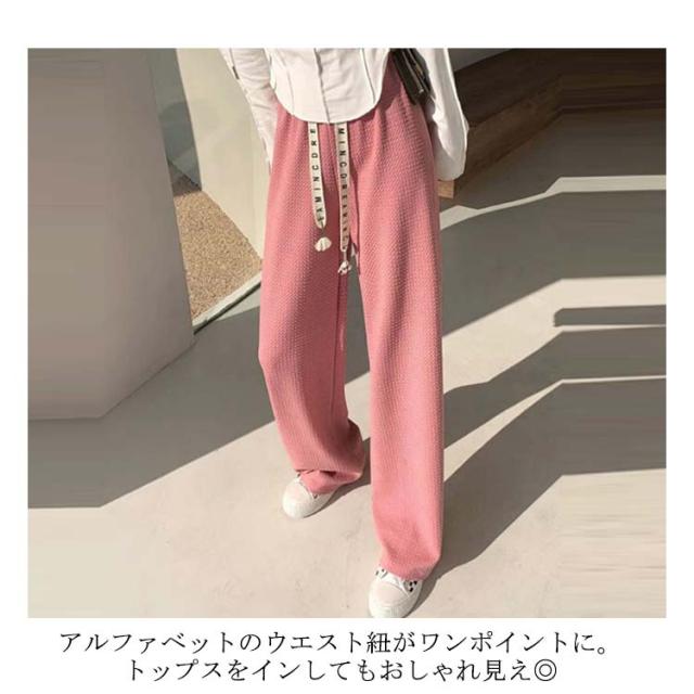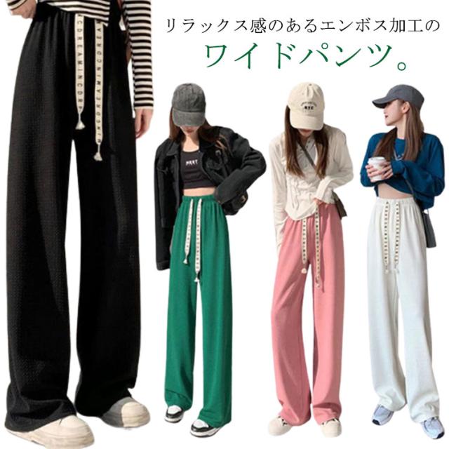 エンボス加工 ワイドパンツ レディース ストレートパンツ ボトムス ワイド ロングパンツ イージーパンツ リラックスパンツ 動きやすい ハイウエスト 楽ちん ウエストゴム 大人可愛い シンプル 体型カバー 大きいサイズ 脚長効果 ルームウェア ワンマイルウェア 送料無料