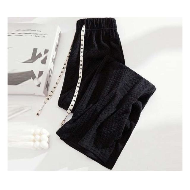 | リラックス感のあるエンボス加工のワイドパンツ。 シワになりにくいイージーケア素材でお手入れラクラク♪ ウエスト総ゴム仕様で着心地がよくストレスフリー。 アルファベットのウエスト紐がワンポイントに。トップスをインしてもおしゃれ見え◎ お出かけはもちろん、おうち時間にも重宝するアイテムです! | |