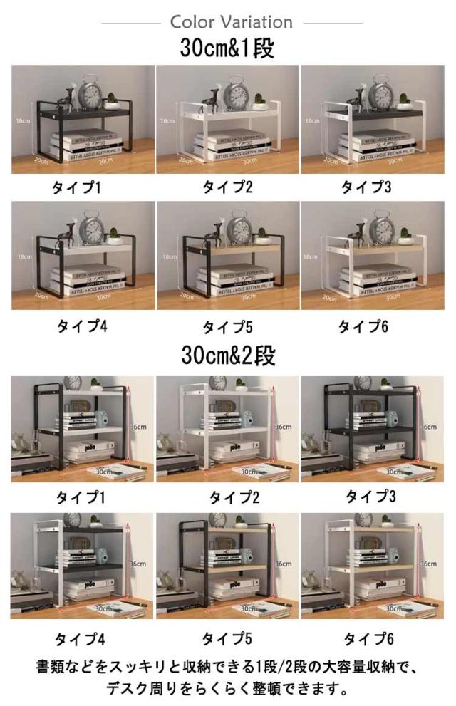 | 縦の空間を有効活用。様々なデスクに取り付けられる机上ラック。 書類などをスッキリと収納できる1段/2段の大容量収納で、デスク周りをらくらく整頓できます。 A4サイズの書類がすっきり入り、なおかつ机上を圧迫しない省スペースでジャストな奥行。 座ったまま上段に収納した書類が取り出せる仕様で、作業効率もアップします 見せるオープン部分には携帯電話や小物・コミック等の収納に最適です。 デスク下やデスク上に置いても僅かなスペースですっきりと収納でき余裕があります | |